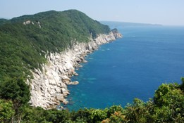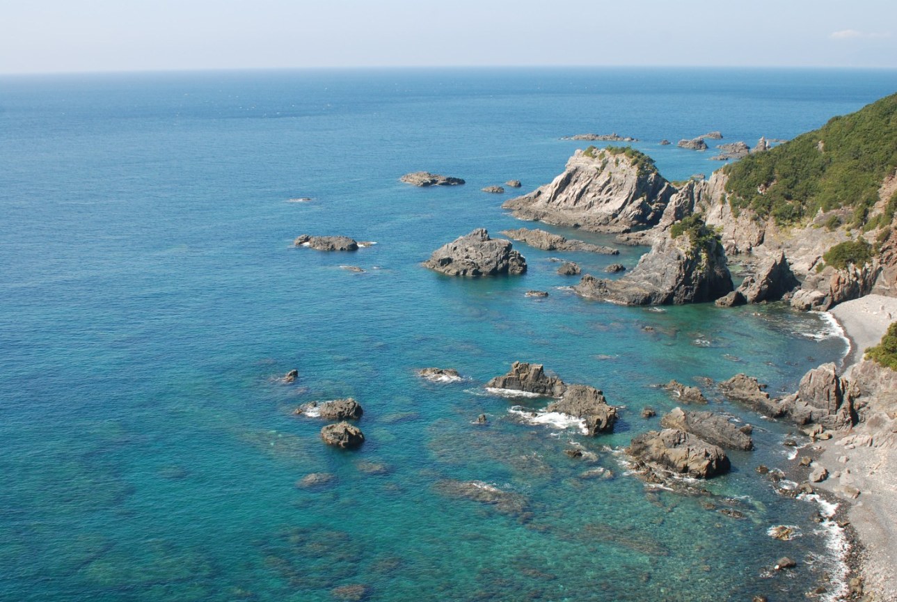*国道321号(サニーロード)叶崎休憩所下に広がるコバルトブルーの海。